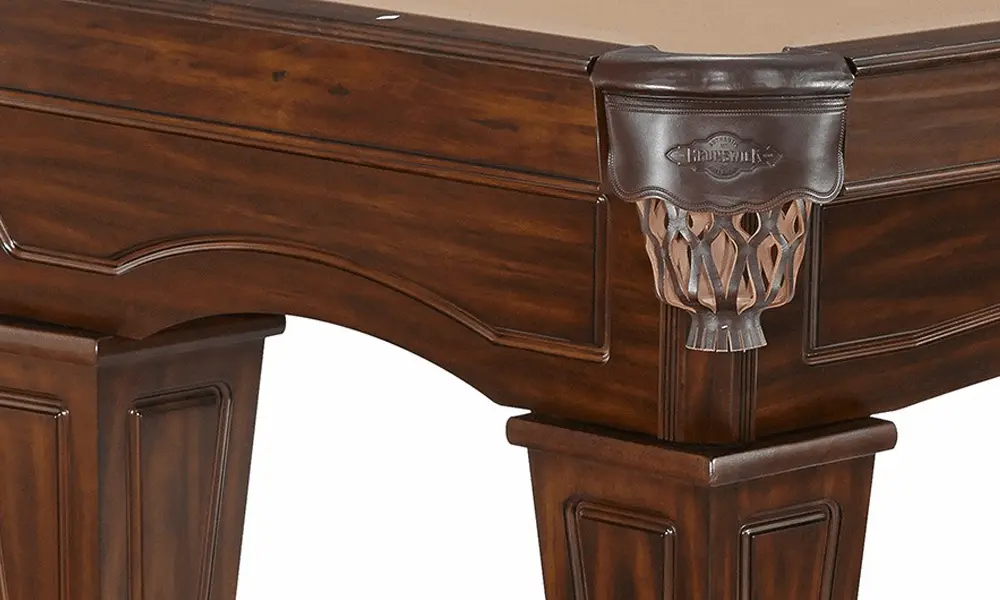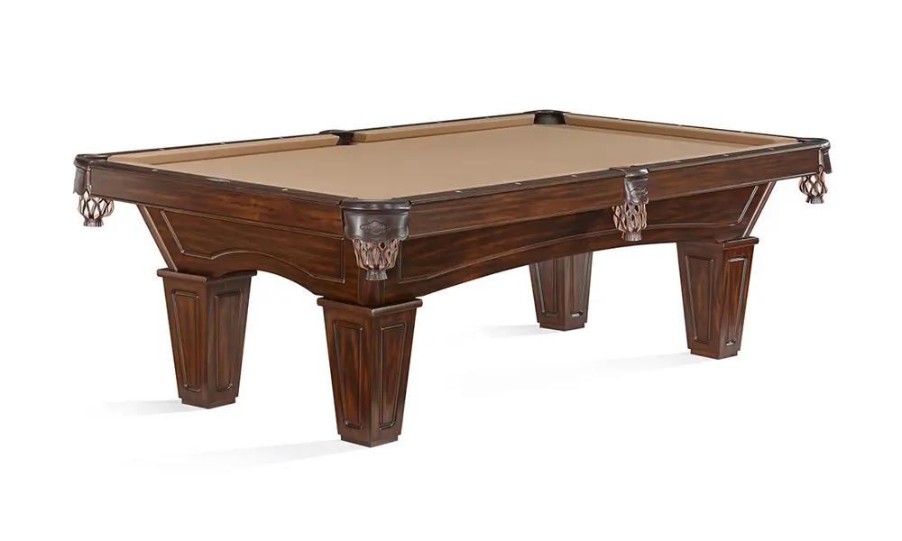A great addition to any home, the Allenton features solid wood rails, Brunswick-certified premium slate, and pearlized diamond-shaped sights to enhance your playing experience. Select the clean, strong lines of the veneered tapered legs in rustic dark brown, espresso, tuscana, or driftwood finish, or opt for the solid wood ball and claw leg in espresso. (Note: Table may appear darker or lighter due to natural variations in wood.)