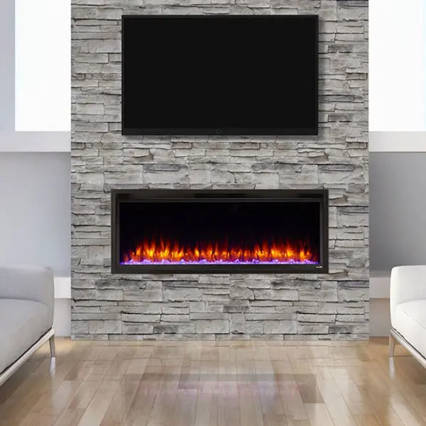Make your home a unique reflection of you with a dazzling upscale linear electric fireplace. The Allusion Platinum modern electric fireplace is the perfect statement piece for your home. From a large viewing area with minimal frame, personalize your ember bed material, flame, and color lighting themes.