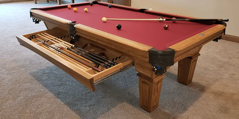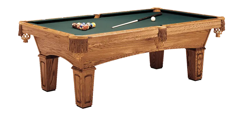 The Augusta Pool Table is made from Solid Wood and features traditional style arched cabinet design with classic tapered legs and router detail. All Olhausen Pool tables are hand-crafted at our 250,000 sq. ft. manufacturing facility in Portland, TN and feature Accu-Fast Cushions and our Lifetime Warranty.