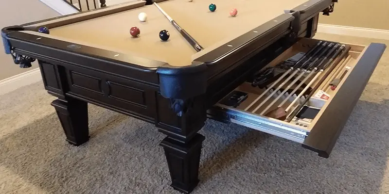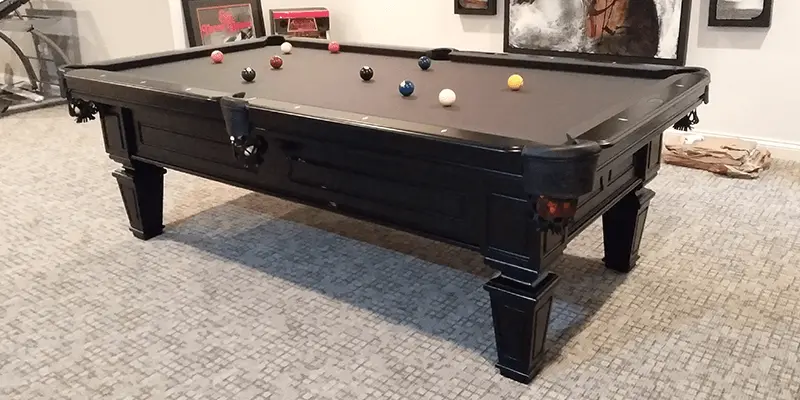 The Brentwood Pool Table is made from Solid Wood and features a routered panel cabinet design with classic tapered legs and router detail. All Olhausen Pool tables are hand-crafted at our 250,000 sq. ft. manufacturing facility in Portland, TN and feature Accu-Fast Cushions and our Lifetime Warranty.