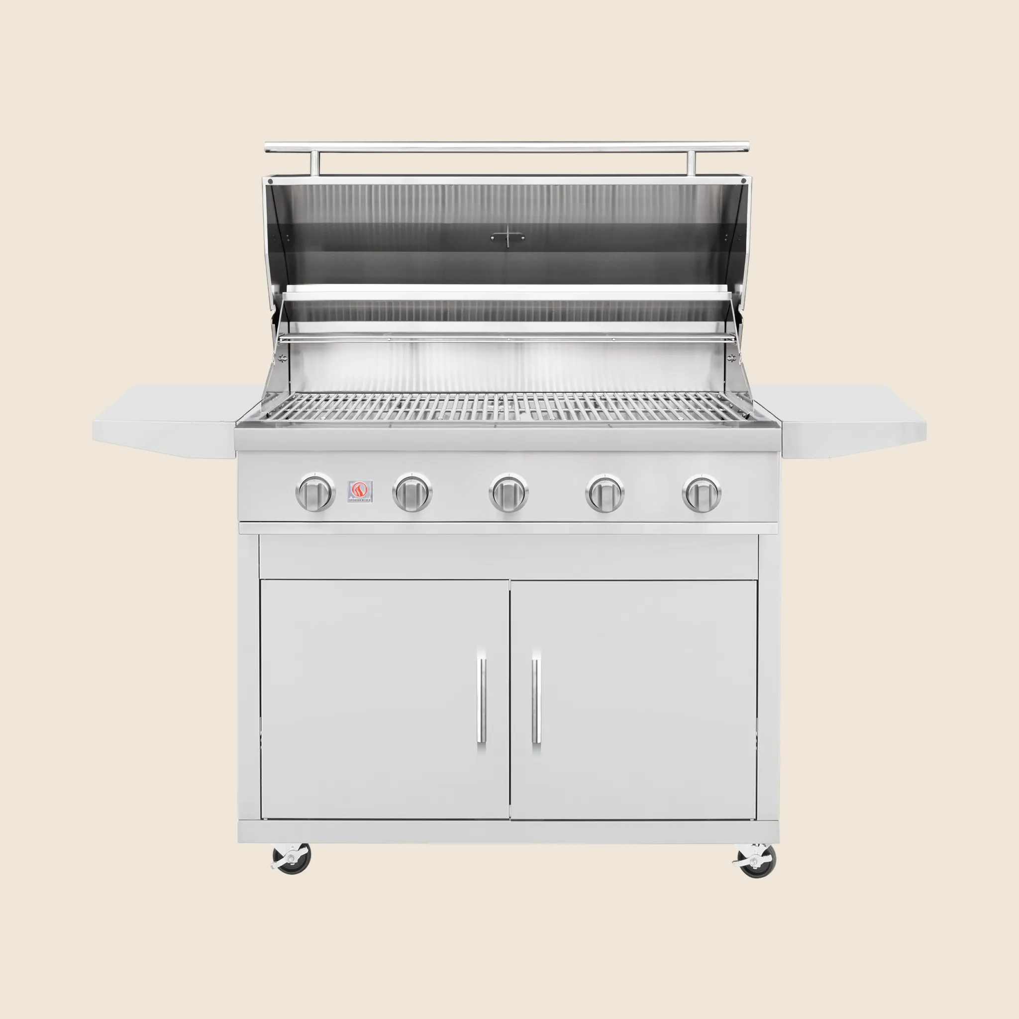 The Summerset Sizzler / Sizzler Pro 40″ Grill Cart offers a premium, built-in alternative. Constructed from high-quality #304 Stainless Steel, this durable Cart delivers exceptional stability, ample storage, and convenient functionality for both casual and professional chefs. *Sizzler Shown in Cart Image