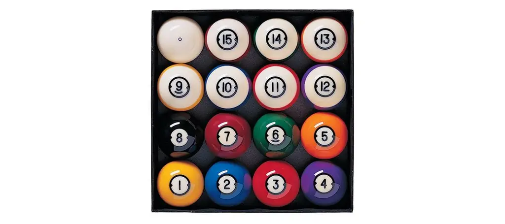Components are solid cast and "vitrified," or heat fused, for a homogeneous molecular bond. A translucent ivory hue, lustrous color, and a unique "dart" identify Centennial® Balls. With resiliency and balance that allows hairline accuracy, and with numbers and colors that will not rub off, spot, or fade, Centennial® Balls are superior in both playing quality and appearance.