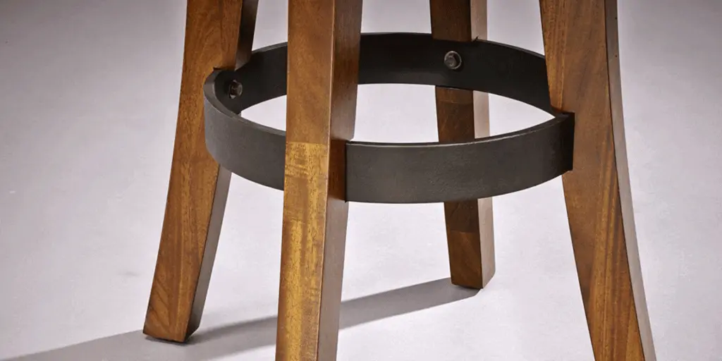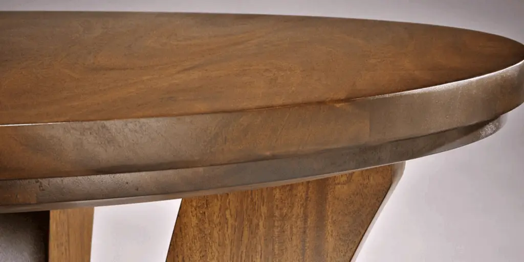 Mixed material - solid hardwood with an aged wrought iron ring accent and arched legs