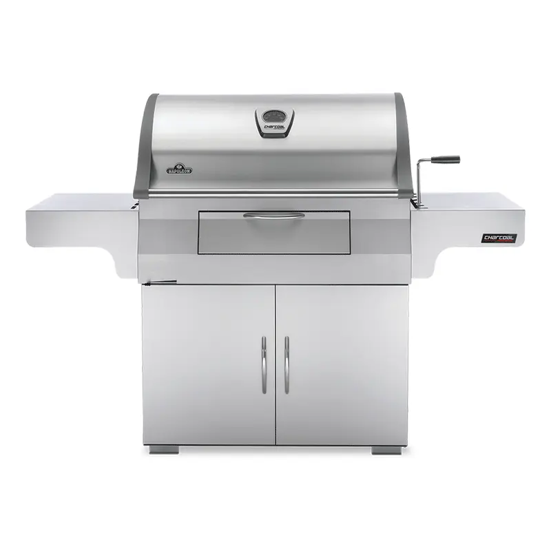 The Napoleon Charcoal Professional Grill takes traditional charcoal grilling to new heights with the stability and features of cart model gas grilling in a huge charcoal BBQ. Durable and beautiful stainless steel construction makes this charcoal grill ideal for every environment. You can add charcoal on the fly with the front loading charcoal door.