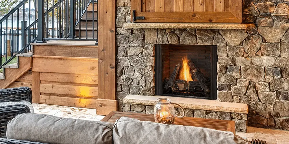 The Courtyard outdoor gas fireplace is the perfect blend of artistry and function: traditional styling with ultra-realistic logs or contemporary glass, that ignite at the flip of a switch. Mesmerizing flames provide instant ambiance and relaxation. Cozy up with the Courtyard.
