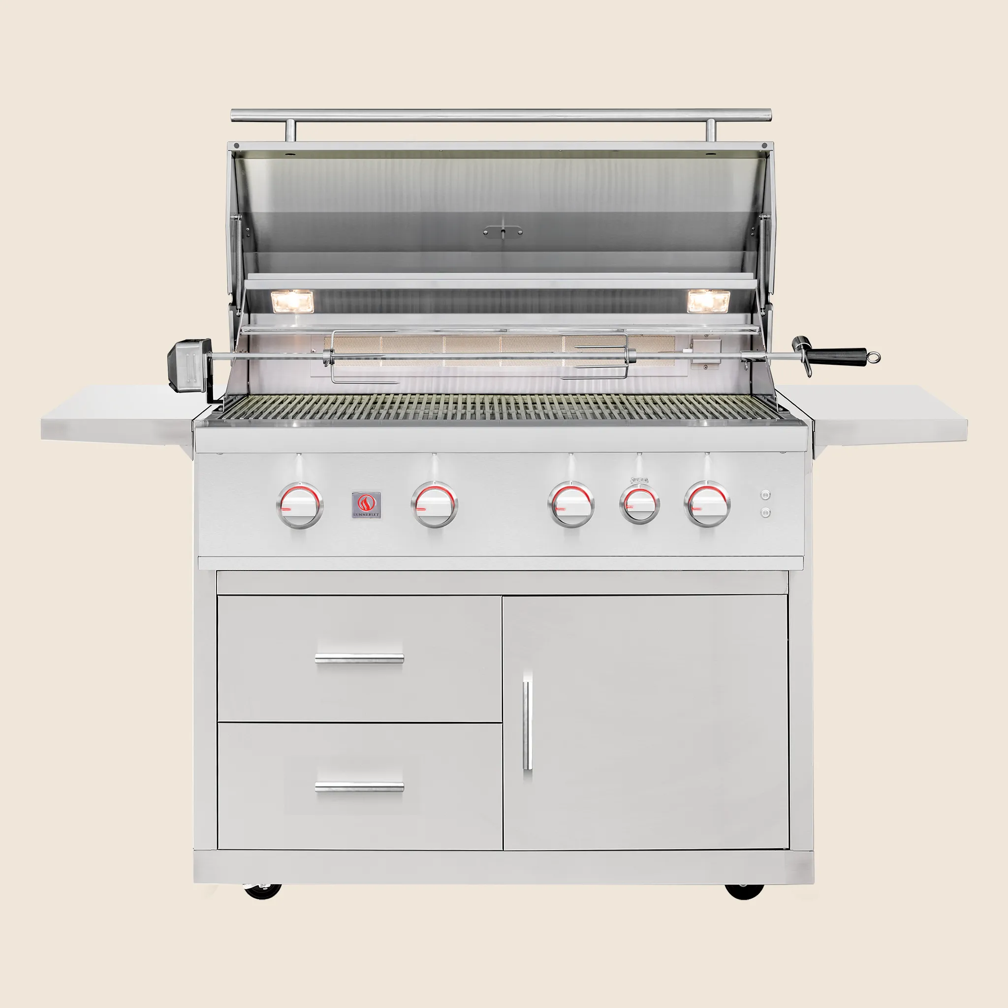 The Summerset TRL Pro 40″ Deluxe Grill Cart offers a premium, built-in alternative. Constructed from high-quality #304 Stainless Steel, this durable Cart delivers exceptional stability, ample storage, and convenient functionality for both casual and professional chefs.