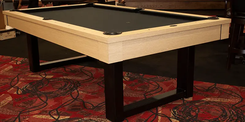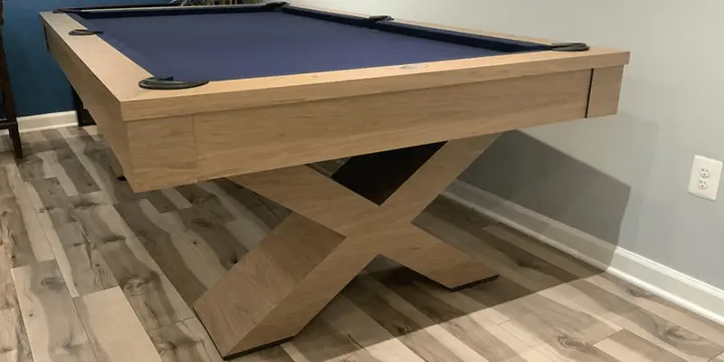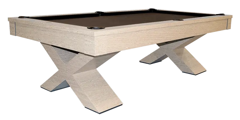The Encore Pool Table is made from Wood Veneers, with Solid Wood rails, flat panel aprons and unique “X” style legs. All Olhausen Pool tables are hand-crafted at our 250,000 sq. ft. manufacturing facility in Portland, TN and feature Accu-Fast Cushions and our Lifetime Warranty.