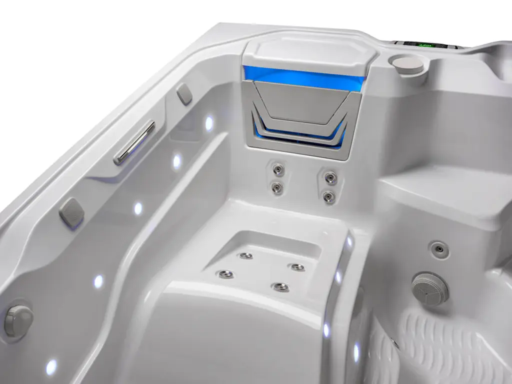 With seating for six, the Flair offers great versatility with both a row of open seats and a lounge. There’s generous space for your feet, and jets in the footwell and the lounge help give you a truly relaxing experience.