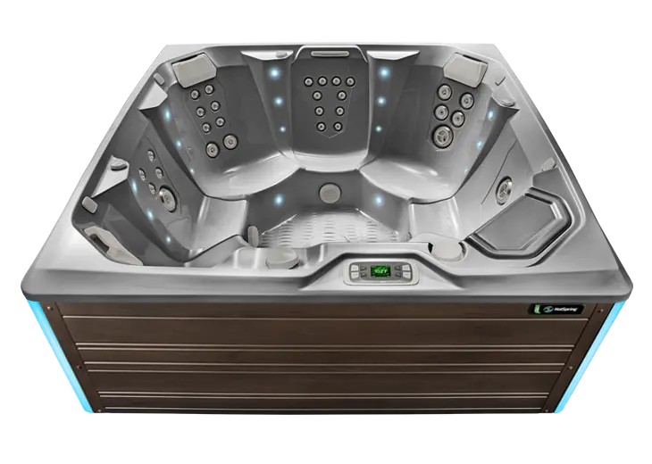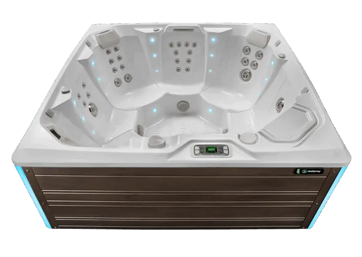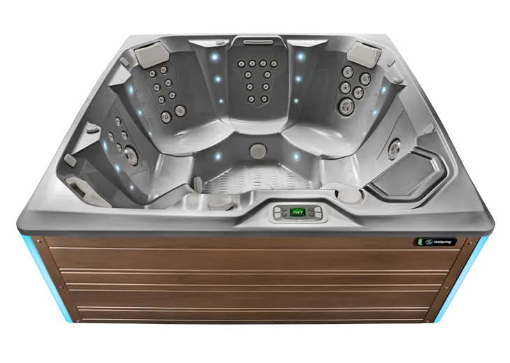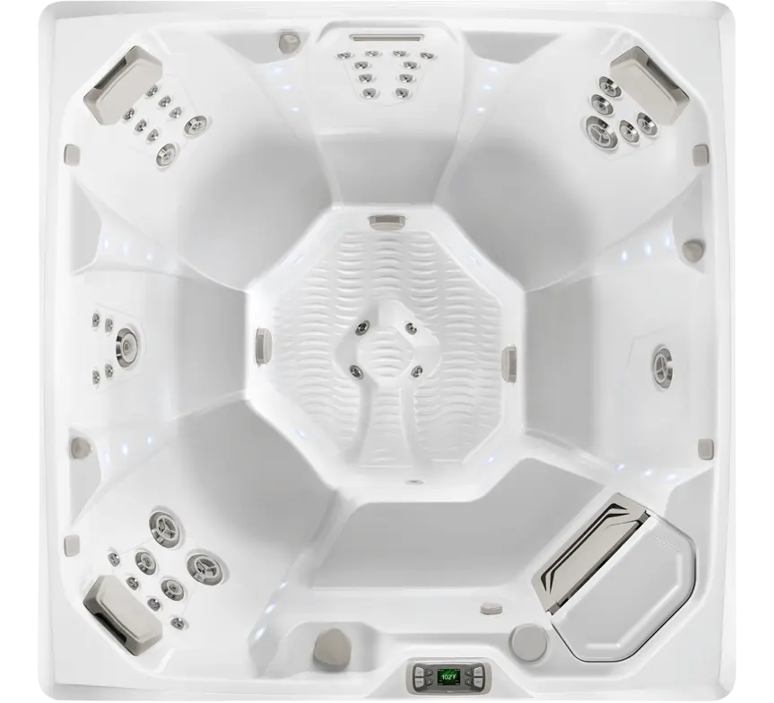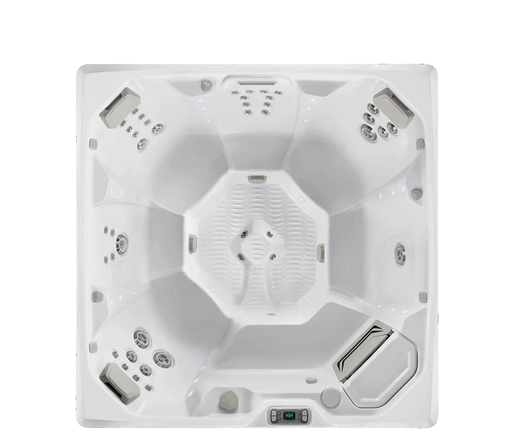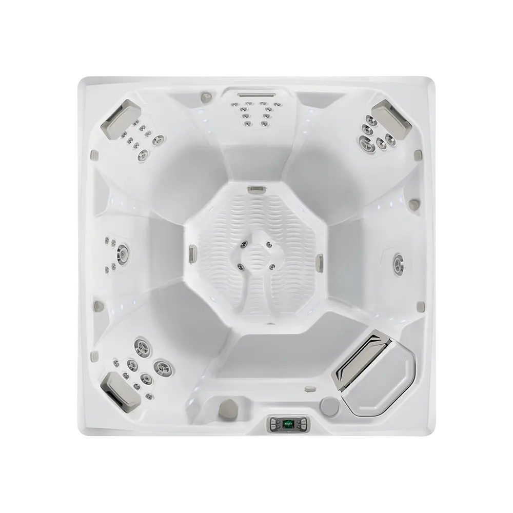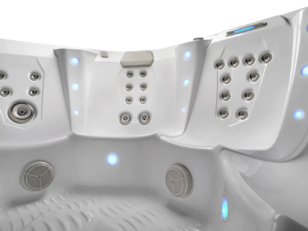 The open-seat design creates a spacious interior that accommodates up to seven people in this spa with a conservative 7’ x 7’ footprint. A pod in the footwell houses four precision directional jets for a foot massage in nearly every seat.