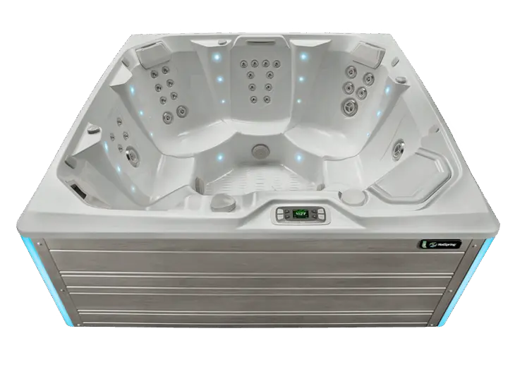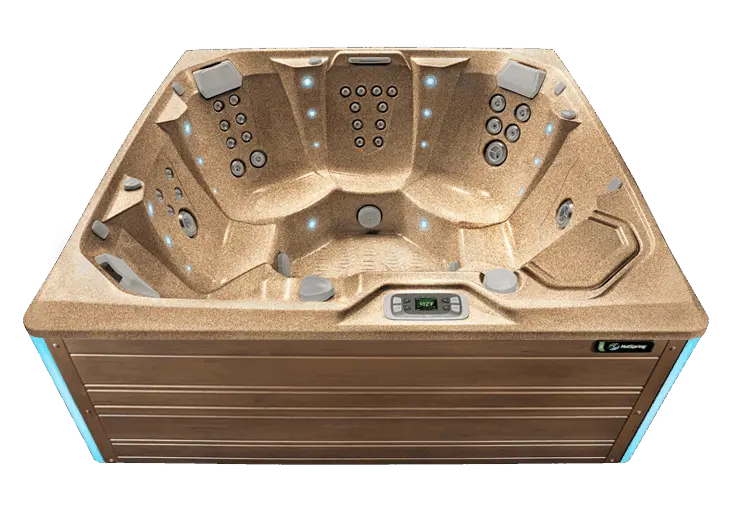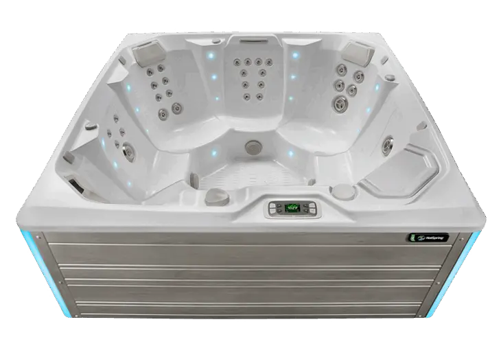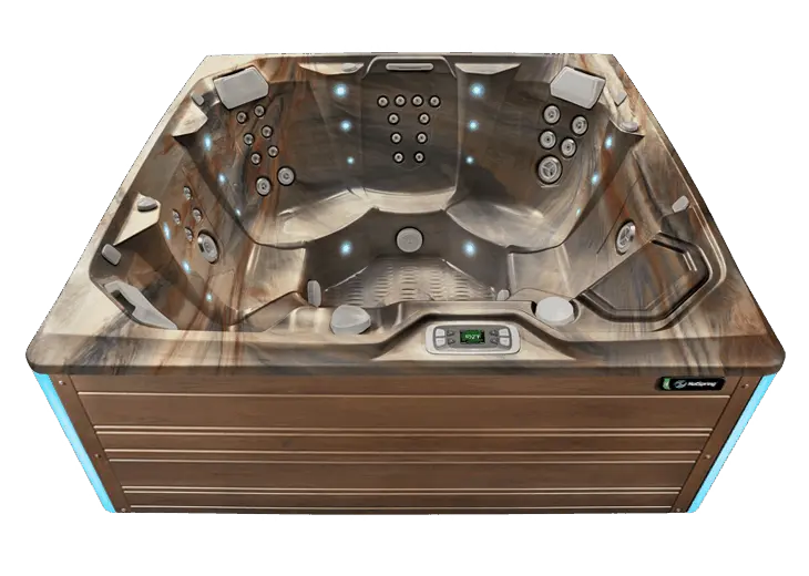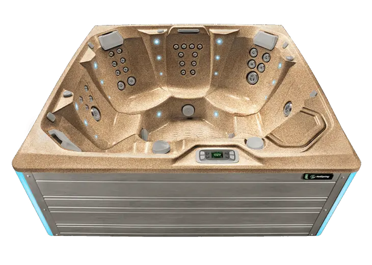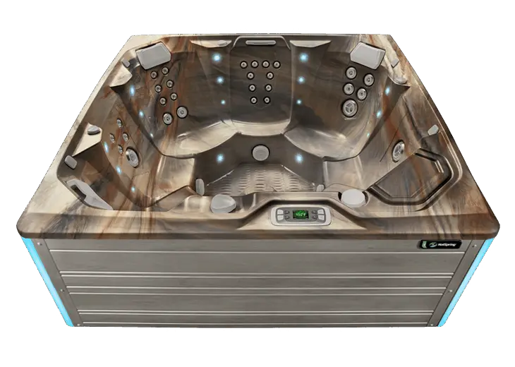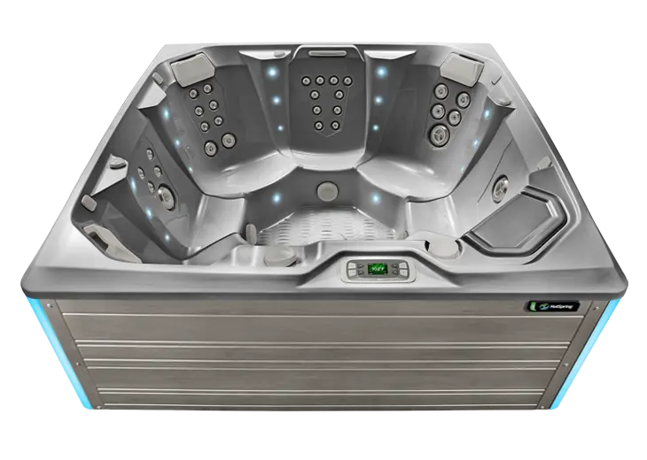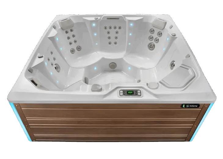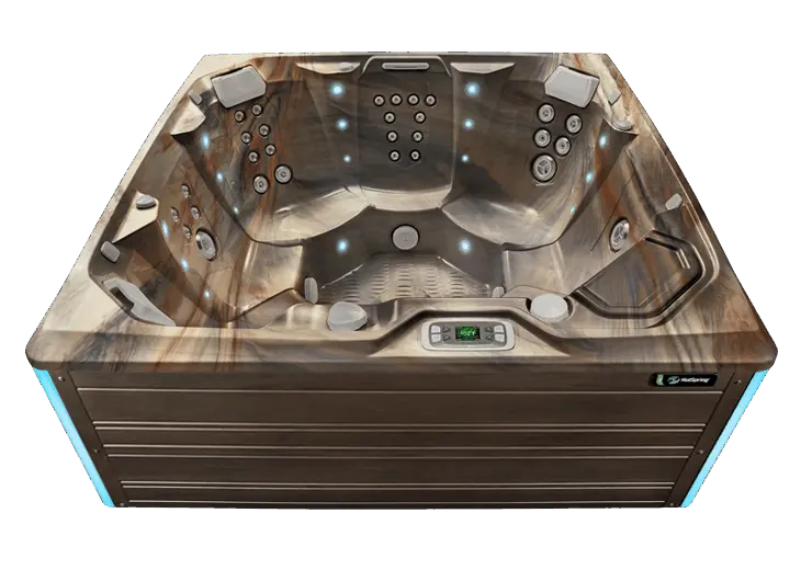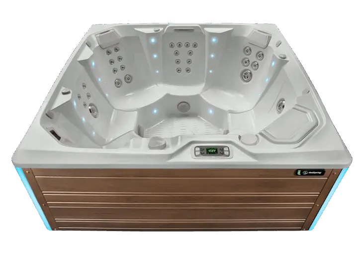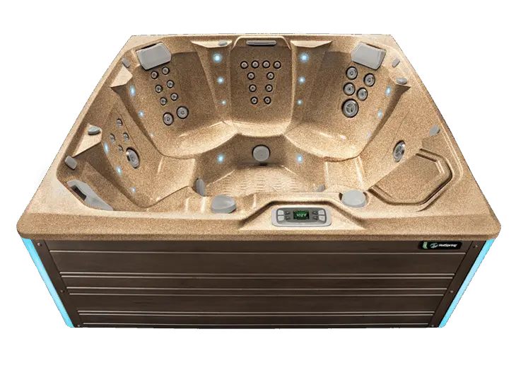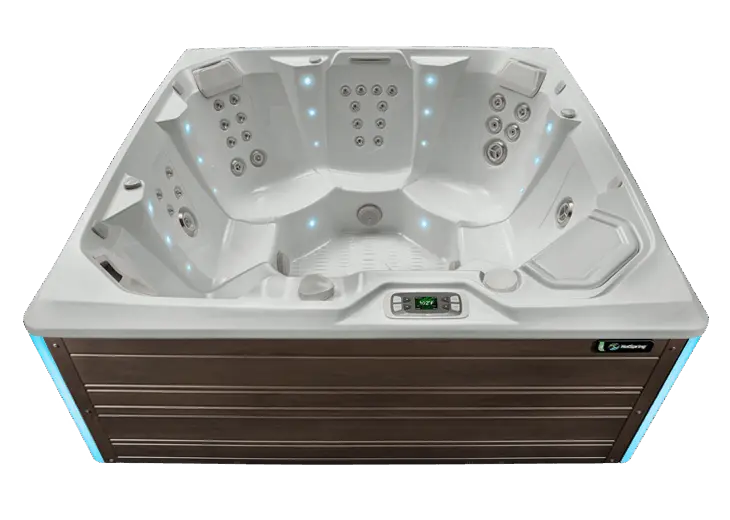 The open-seat design creates a spacious interior that accommodates up to seven people in this spa with a conservative 7’ x 7’ footprint. A pod in the footwell houses four precision directional jets for a foot massage in nearly every seat.