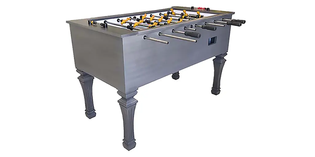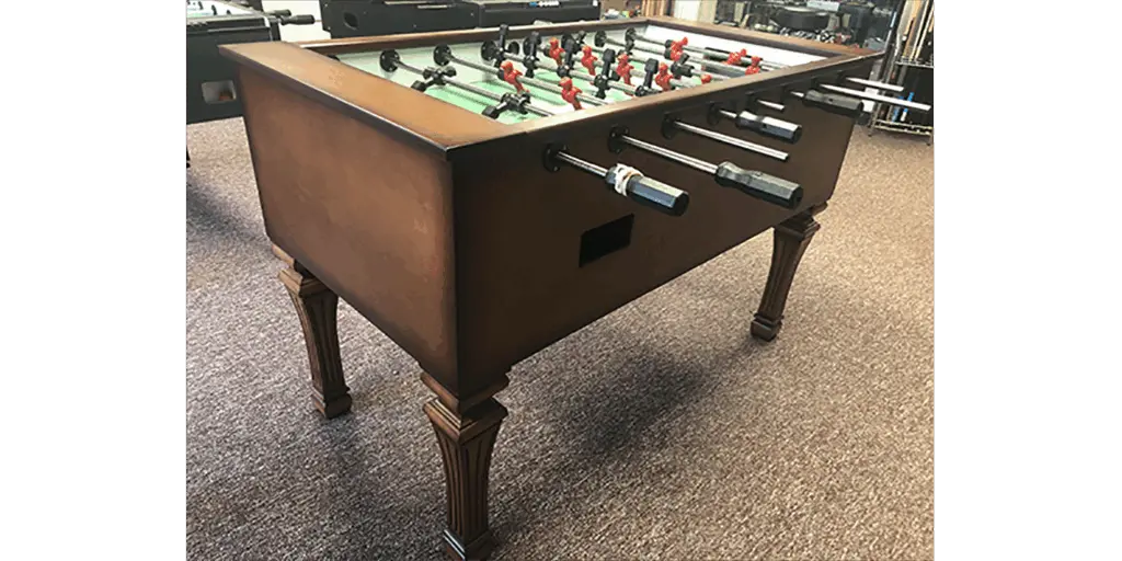 The perfect compliment to your game space is the furniture style foosball table. We can match your pool table or shuffleboard style with different leg options. Features include high pressured laminated playfield, forged steel rods, counter balanced men and one man goalie.