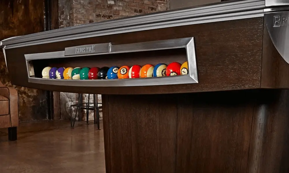 The Gold Crown VI continues Brunswick's tradition of excellence as the newest edition of the legendary table series. The Gold Crown VI features a familiar design with modern styling. The new low-profile leg base and hidden stretcher provide a streamlined appearance while the angular canted leg emphasizes the clean lines. The table also features new corner and rail castings in a brushed nickel finish for a sleek high-end aesthetic.