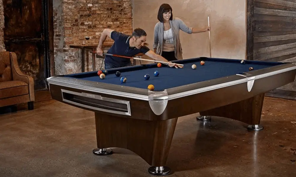 Available in 8' and 9' options. (Please note, the 8' table does not come with a ball storage box.). The Gold Crown VI Tournament Edition table features longer rails and tighter pockets engineered to strict World Pool-Billiard Association specifications. Table decals included.