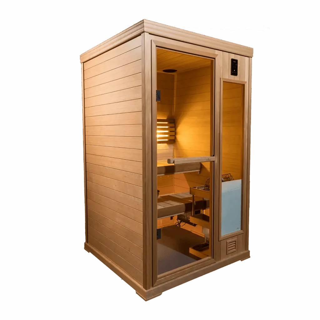 Imagine having a luxurious Finnish sauna experience quickly, easily and wherever you like. With the 6-panel Hallmark, you can — it truly is portable! The Hallmark comes equipped with the same features as other Hallmark saunas, but with 120-volt plug-in instead of 240. Simply assemble in less than an hour, plug into the closest outlet, and you’re ready — no finishing work, no plumbing and no electrical.