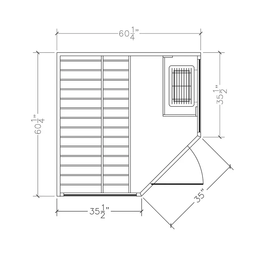 This corner unit sauna is designed to minimize the floor space it requires in your home, yet it maximizes its interior space to seat 2-3 people comfortably. The HM55c is a 5-sided unit, with an all-glass door and two oversized windows that create openness despite its small footprint.