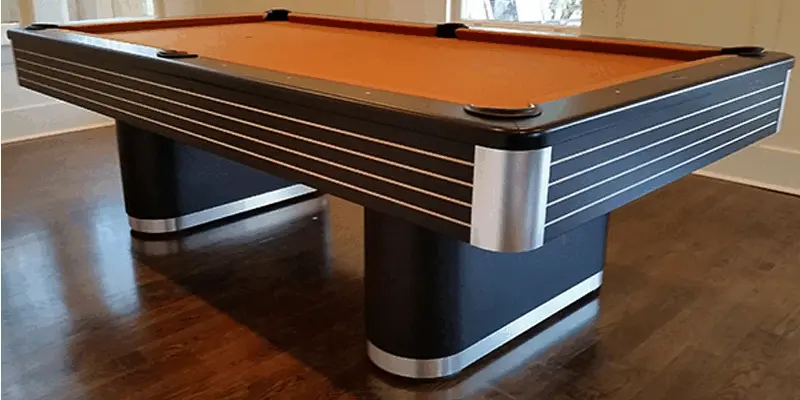 The Heritage Pool table is made from Solid Maple featuring modern flat paneled apron design with pedestal base legs with Brushed Aluminum Trim on legs and apron. All Olhausen Pool tables are hand-crafted at our 250,000 sq. ft. manufacturing facility in Portland, TN and feature Accu-Fast Cushions and our Lifetime Warranty.