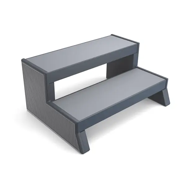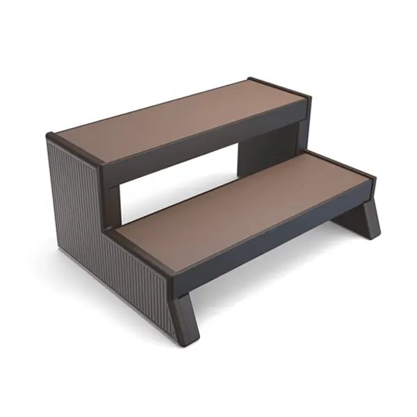 Two-tone steps with treads in four different color options to match spa cabinets.