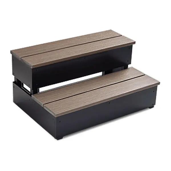 Two-tone steps with treads in three different color options to match spa cabinets.