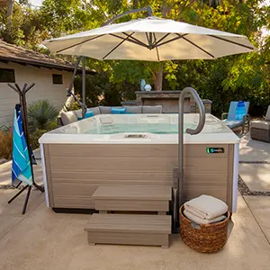 Bring shade to your spa with the 360° rotatable spa side umbrella. Constructed from powder coated aluminum and zinc-plated steel, this umbrella is rust-resistant with a base plate under the spa cabinet for stability.