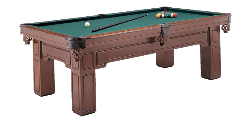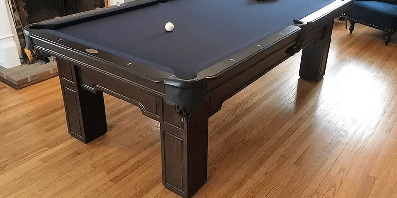 The Huntington Pool table is made from Solid Wood and features flat paneled apron with routered detail with floor to slate leg design. All Olhausen Pool tables are hand-crafted at our 250,000 sq. ft. manufacturing facility in Portland, TN and feature Accu-Fast Cushions and our Lifetime Warranty.