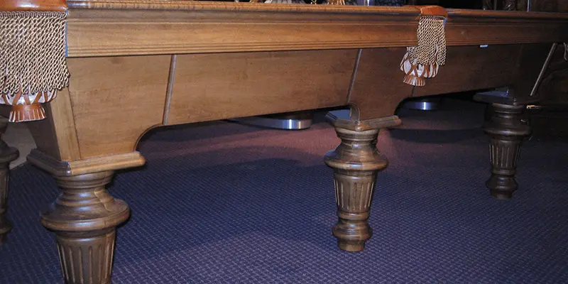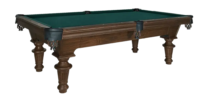 The Innsbruck Pool table is made from Solid Wood and features routered paneled cabinet design with flutted legs with routered detail. All Olhausen Pool tables are hand-crafted at our 250,000 sq. ft. manufacturing facility in Portland, TN and feature Accu-Fast Cushions and our Lifetime Warranty.