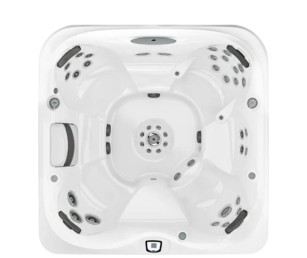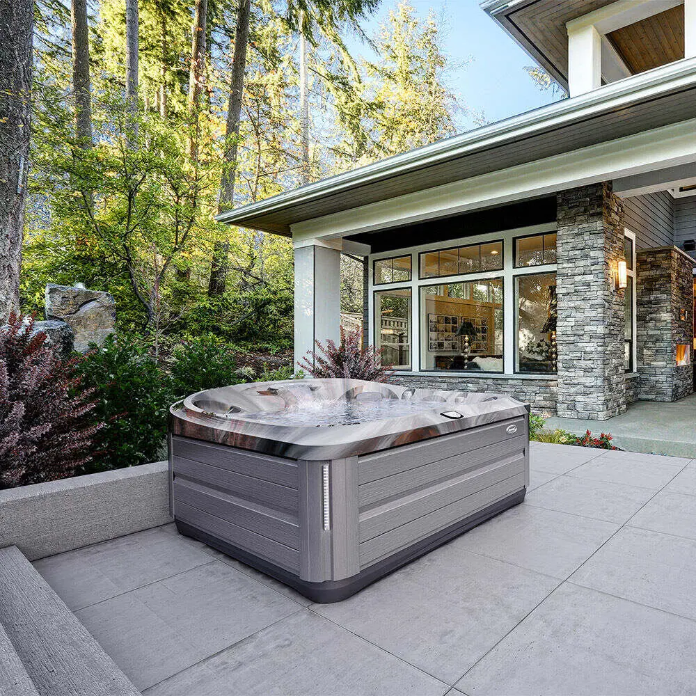 The J-485™ Jacuzzi® Hot Tub provides neck-to-toe muscle relief with a high-back design and adjustable pillow for enhanced relaxation at any height. With a roomy, open-seat design with 6-7 seats, the Jacuzzi® J-485™ model is set apart by its stunning Pro-Finish™ cabinetry, corner accent lighting, and an exclusive extra-wide illuminated waterfall that provides a relaxing cascade of warm water down the neck and back.