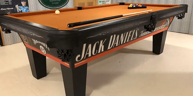 One of Americas favorite whiskeys, The Jack Daniels name is known worldwide. Now you can own your own Jack Daniels pool table! All Olhausen Pool tables are hand-crafted at our 250,000 sq. ft. manufacturing facility in Portland, TN and feature Accu-Fast Cushions and our Lifetime Warranty.