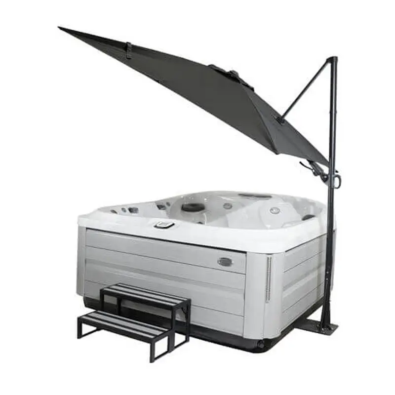 This premium umbrella features the same ProLast materials as our premium spa covers for years of dependable use. It has a 8" square canopy mounted on a sturdy aluminum frame anchored to a heavy duty stell base that slides under your spa. It's true canilever design easily opens and closes. The umbrellas also has an innovative tilt handle allowing you to position shade and privacy exactly where you need it. It can also be rotated 180 degrees to shade seating areas next to the Spa!