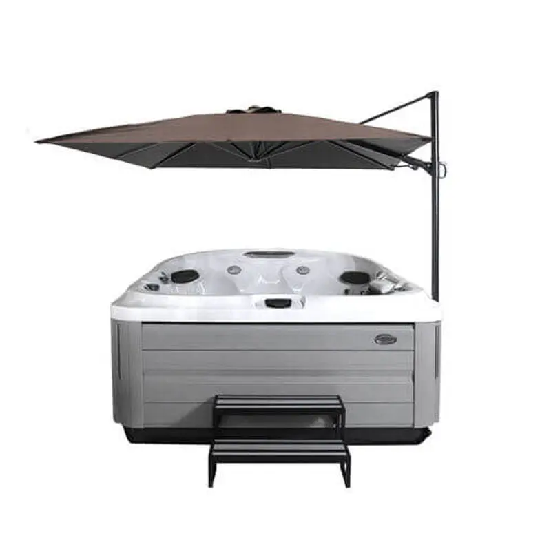 This premium umbrella features the same ProLast materials as our premium spa covers for years of dependable use. It has a 8" square canopy mounted on a sturdy aluminum frame anchored to a heavy duty stell base that slides under your spa. It's true canilever design easily opens and closes. The umbrellas also has an innovative tilt handle allowing you to position shade and privacy exactly where you need it. It can also be rotated 180 degrees to shade seating areas next to the Spa!