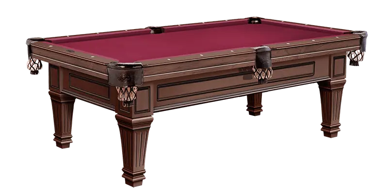 The Kirkwood Pool table is made from Solid Wood and features flat paneled routered cabinet design with classic tapered legs with routered detail. All Olhausen Pool tables are hand-crafted at our 250,000 sq. ft. manufacturing facility in Portland, TN and feature Accu-Fast Cushions and our Lifetime Warranty.