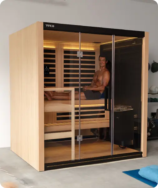 Kiruna Hybrid offers both traditional and infrared heat, used separately to support circulation, muscle recovery, stress relief, and restful sleep.