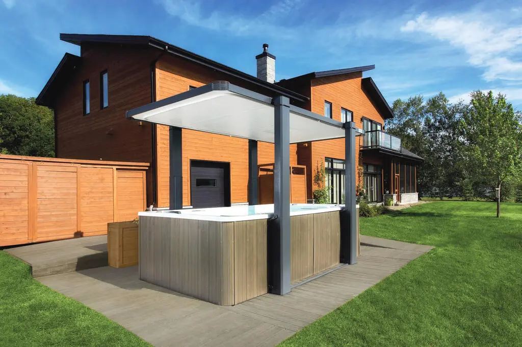 When closed, this robust cover, with a far higher insulation value than more traditional hot tub covers, provides unequaled protection while preventing undesirable access to children, animals and intruders. Once opened, its roof will protect you from bad weather conditions and the solidity of its design will ensure your peace of mind, regardless of how bad the conditions are. In addition, its flexible design makes it ideal for both oval and rectangular swim spas.