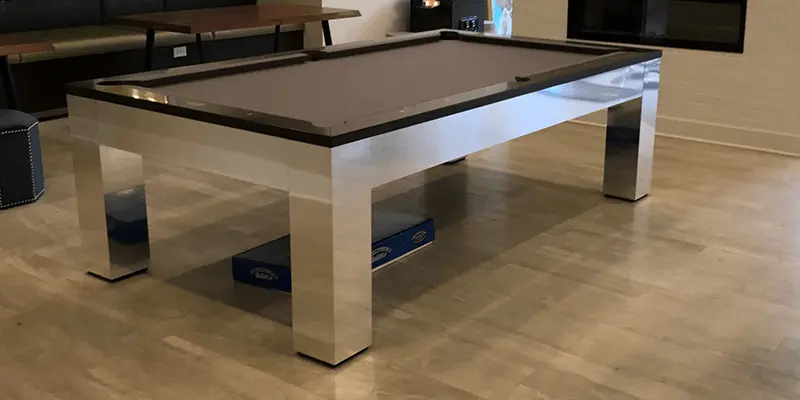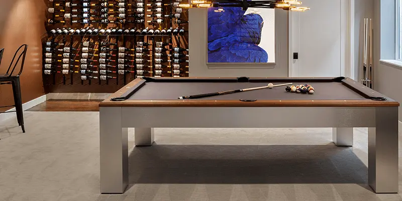 The Madison Pool table features modern style enclosed solid wood rail system with flat paneled apron with floor to slate leg design.. All Olhausen Pool tables are hand-crafted at our 250,000 sq. ft. manufacturing facility in Portland, TN and feature Accu-Fast Cushions and our Lifetime Warranty.