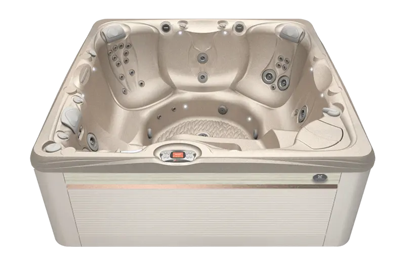 The Makena® a full-featured, full-sized lounge spa model in the popular Paradise Series is perfect for daily personal care, family time and entertaining. The Makena features our signature comfort, performance and style amenities including 46 jets, 12 points-of-light, a backlit Acquarella® waterfall, and seating for up to 6 adults.