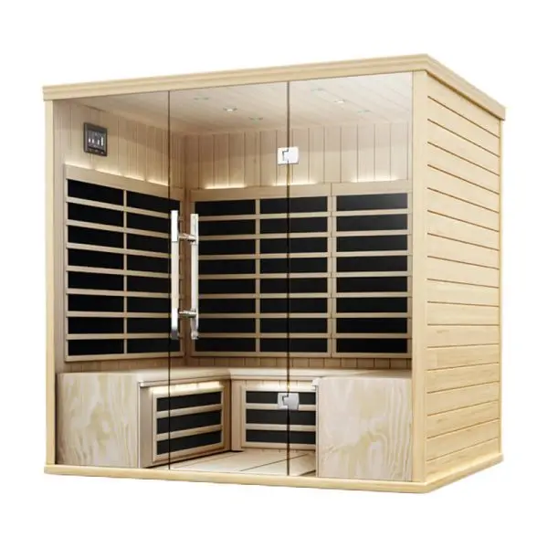 Low EMR and Low EF throughout the entire saunaBy far the lowest EMR/EF of any infrared bathing system —beats even Sweden’s tough standards.Exclusive EvenHeat technology—warms quickly and evenly with no "cold” spots.Finishing in clear Canadian Hemlock for its sturdy quality and beauty.Prefabricated panels for fast assembly with no tools —you can enjoy the full detox and relaxation benefits of your Pure Infra sauna within an hour of delivery.Full glass fronts and tempered, top quality floor to ceiling glass doors