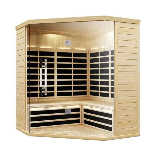 Low EMR and Low EF throughout the entire saunaBy far the lowest EMR/EF of any infrared bathing system —beats even Sweden’s tough standards.Exclusive EvenHeat technology—warms quickly and evenly with no "cold” spots.Finishing in clear Canadian Hemlock for its sturdy quality and beauty.Prefabricated panels for fast assembly with no tools —you can enjoy the full detox and relaxation benefits of your Pure Infra sauna within an hour of delivery.Full glass fronts and tempered, top quality floor to ceiling glass doors