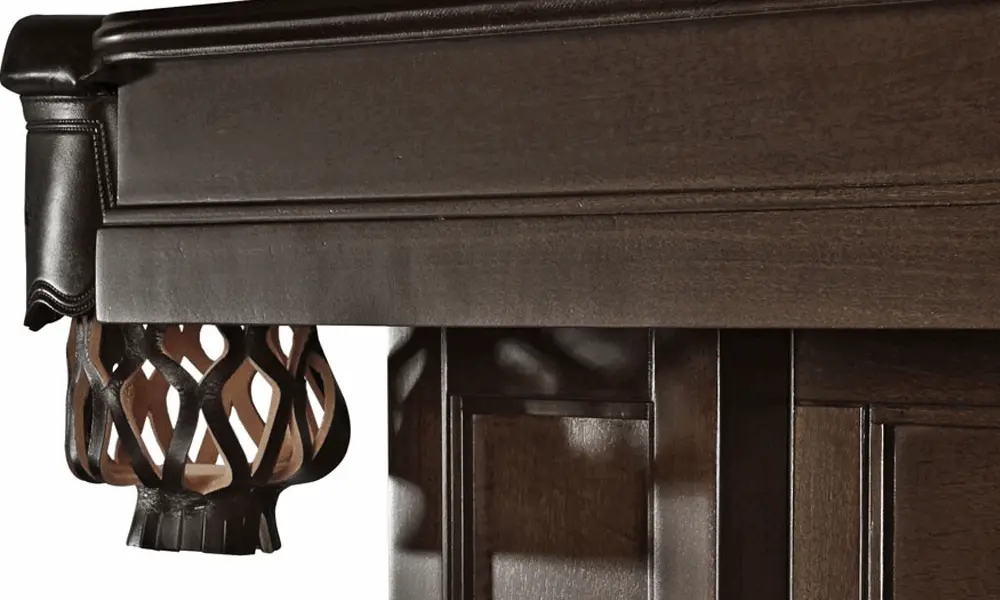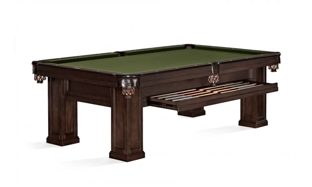The straight lines, simple design and heavy proportion of the Oakland II table are trademark characteristics of the Arts & Crafts style of furniture originally popular during the 1890's to 1910's. This distinct table features solid wood rails and leather pockets. Available in Espresso and Rustic Grey.
