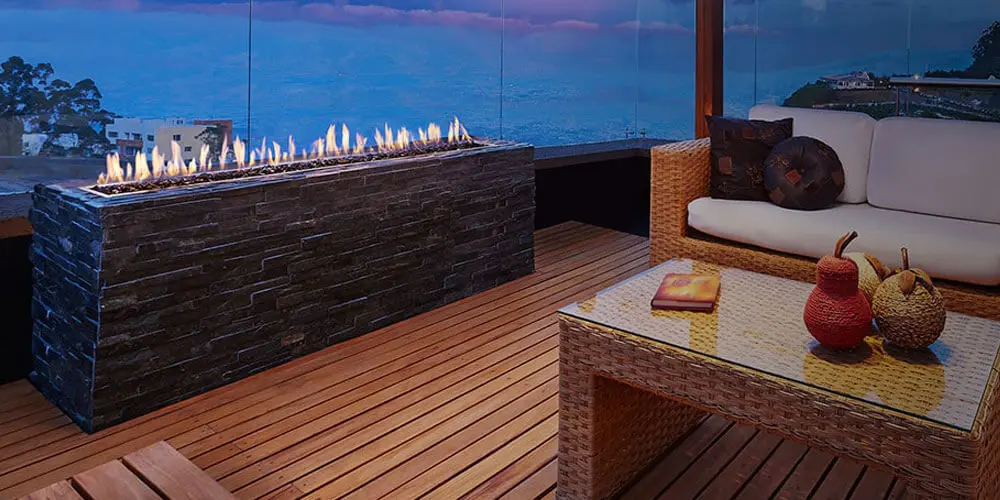 The Plaza outdoor linear gas fire pit allows you to invite your neighbors to gather around the fire—or add a dramatic statement piece in your space. Make this fire feature your own with endless finishing options to complete your outdoor oasis. With only a flick of a lighter, sit back and enjoy.
