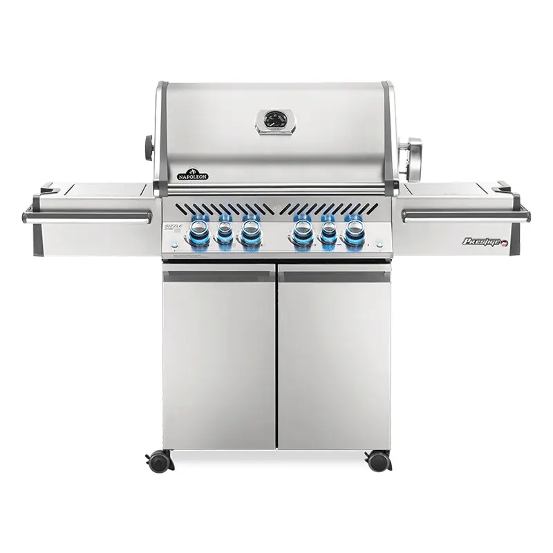 This slick grill is as impressive as its title sounds. The Prestige PRO™ 500 Natural Gas Grill with Infrared Rear and Side Burners is a professional style grill, built with high-quality, high-performance features making grilling easy and impressive. A shining stainless steel body provides durability against the elements while chrome details add a touch of luxury. Inside; the same high-quality stainless steel is used for the cooking grids, tube burners, sear plates, and basin. You'll know it's a Napoleon with those iconic WAVE™ cooking grids and proximity lighting. Grill steak like the PROs using the 1800° infrared side burner to create the perfect sear. Illuminated cooking area and interior storage, soft close doors, and spacious side shelves are just a few of the features. The LED Spectrum NIGHT LIGHT™ Control Knobs have near limitless color options making night-time entertaining a breeze, and they also glow red when the gas is left on as a safety feature.