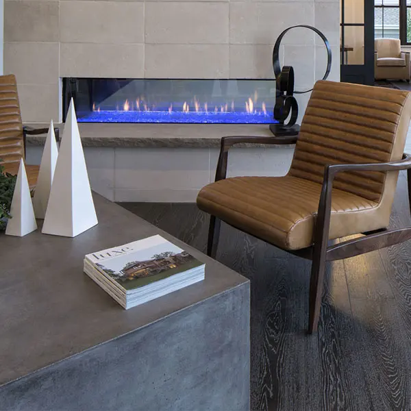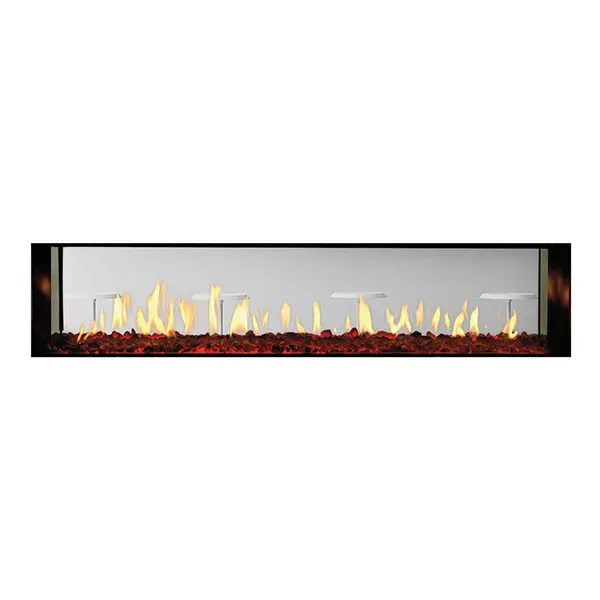 Elevate your atmosphere in a see-through version of the Primo, which shines the beauty of your interior everywhere. Connect your living space with our high-end linear gas fireplace in a bold clean finish.
