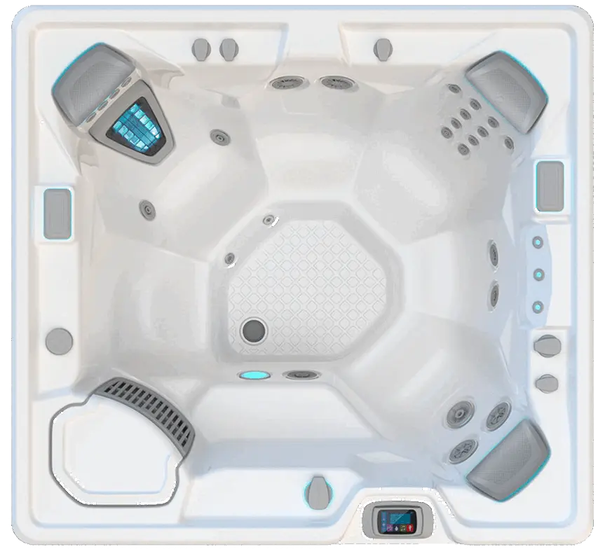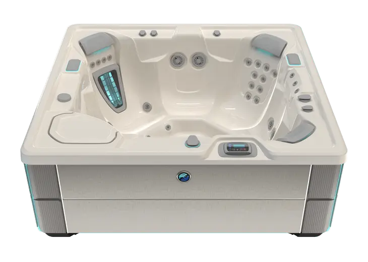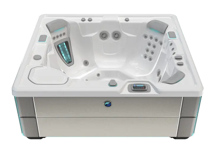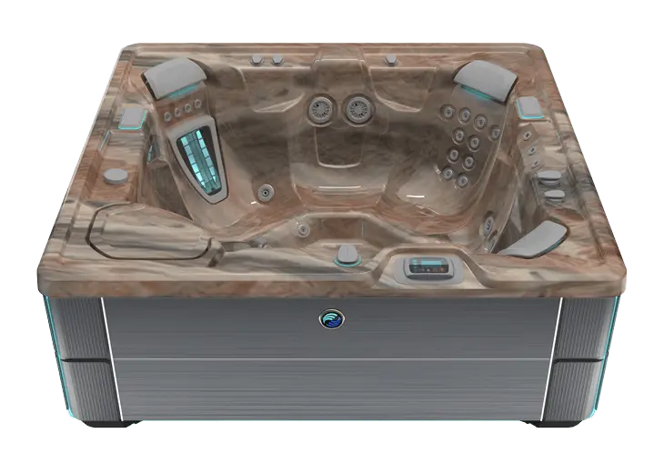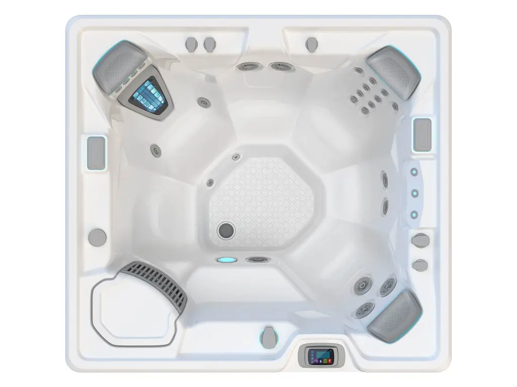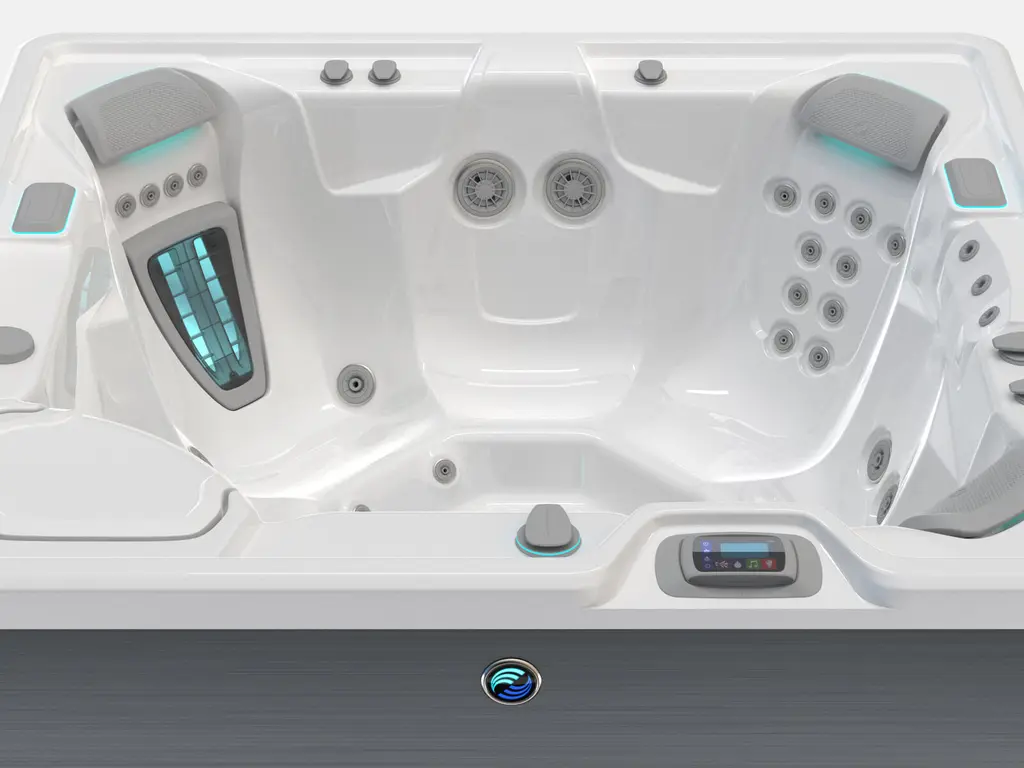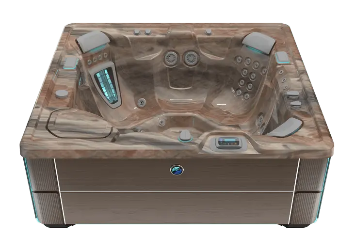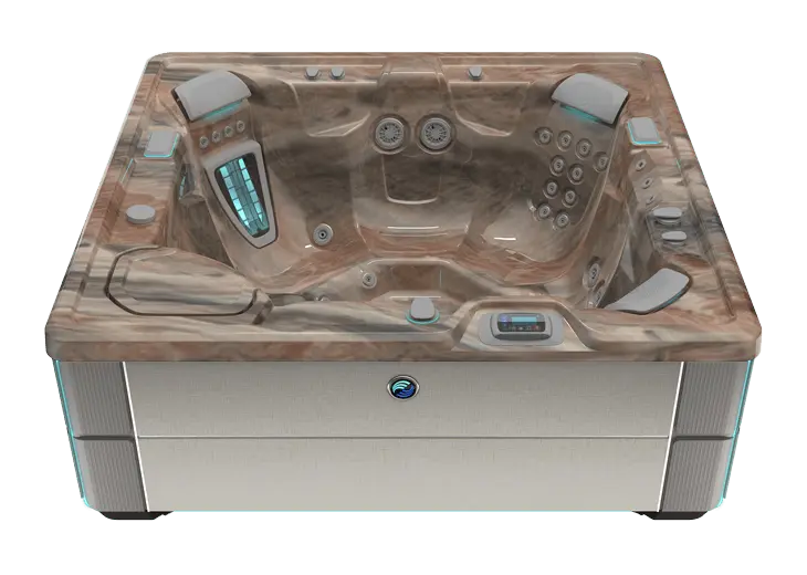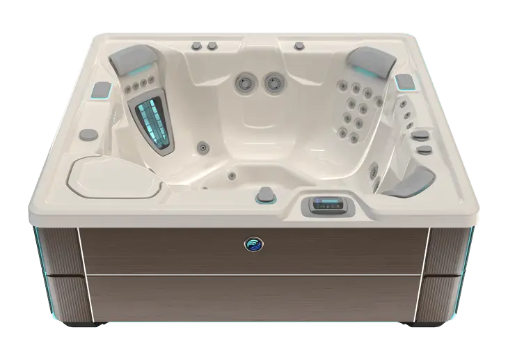 The Prodigy is a spacious mid-size hot tub with open seating, well-suited to large or small spaces. It features our exclusive Moto-Massage® DX jet and a cooldown seat.
