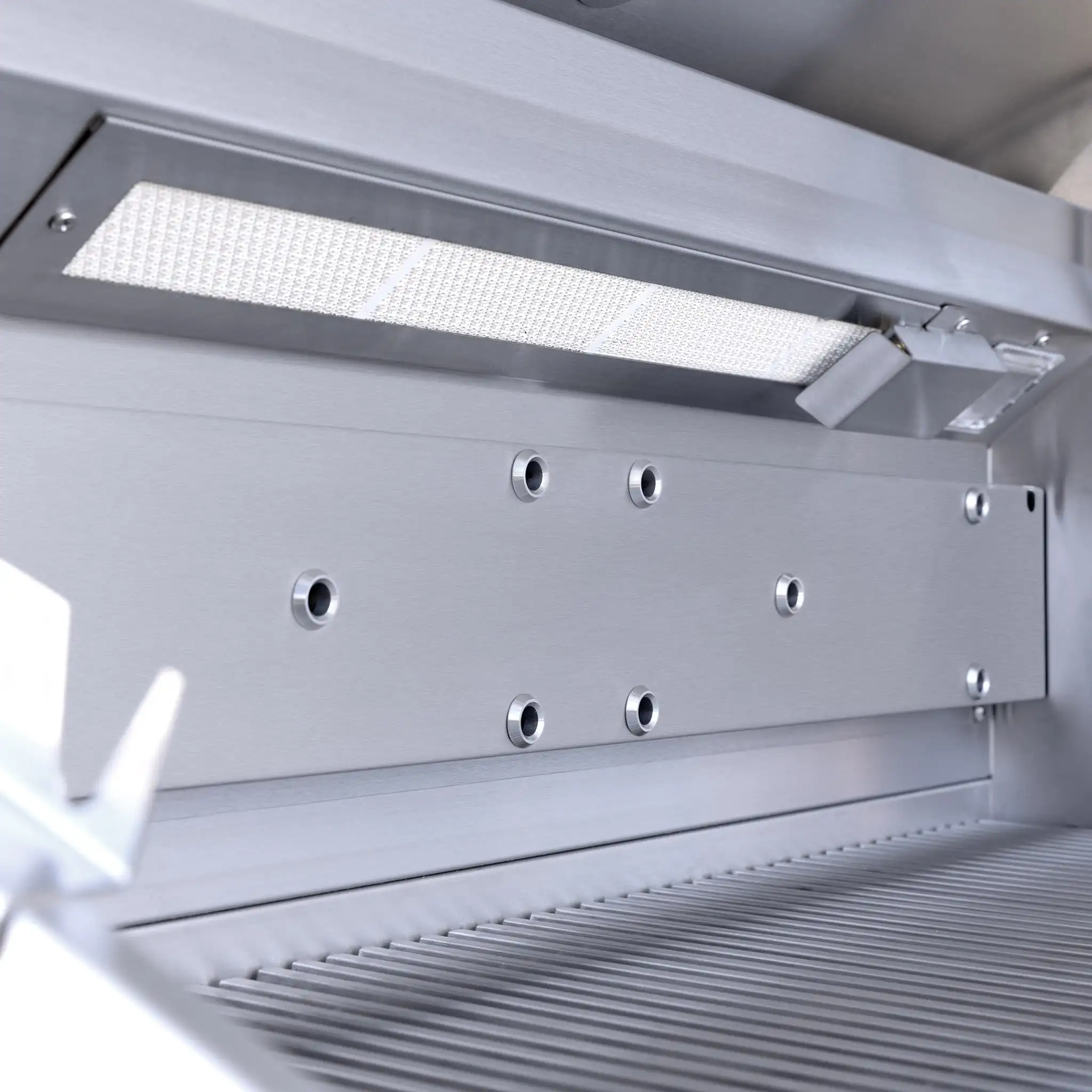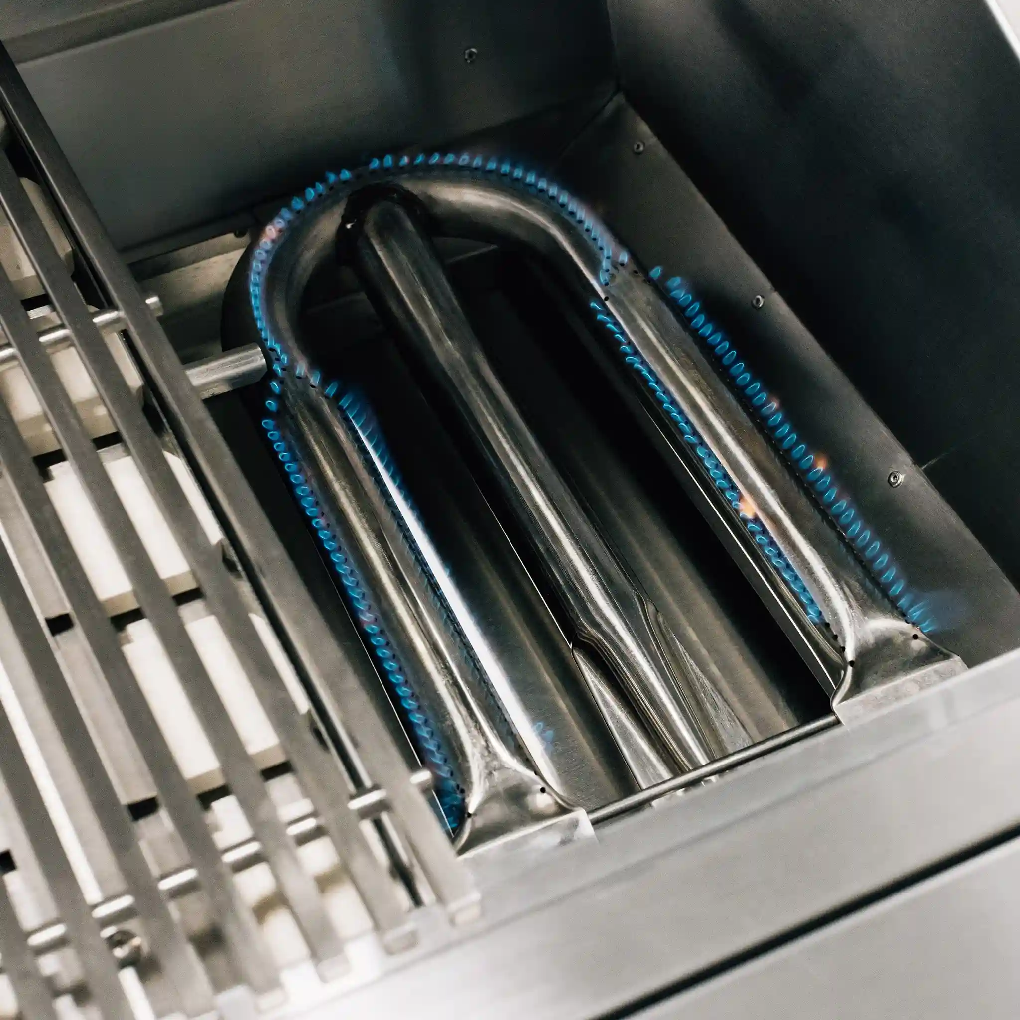 - 18,000 BTU Stainless Steel U-Tube Burners and a 13,000 BTU Angled Infrared Back Burner