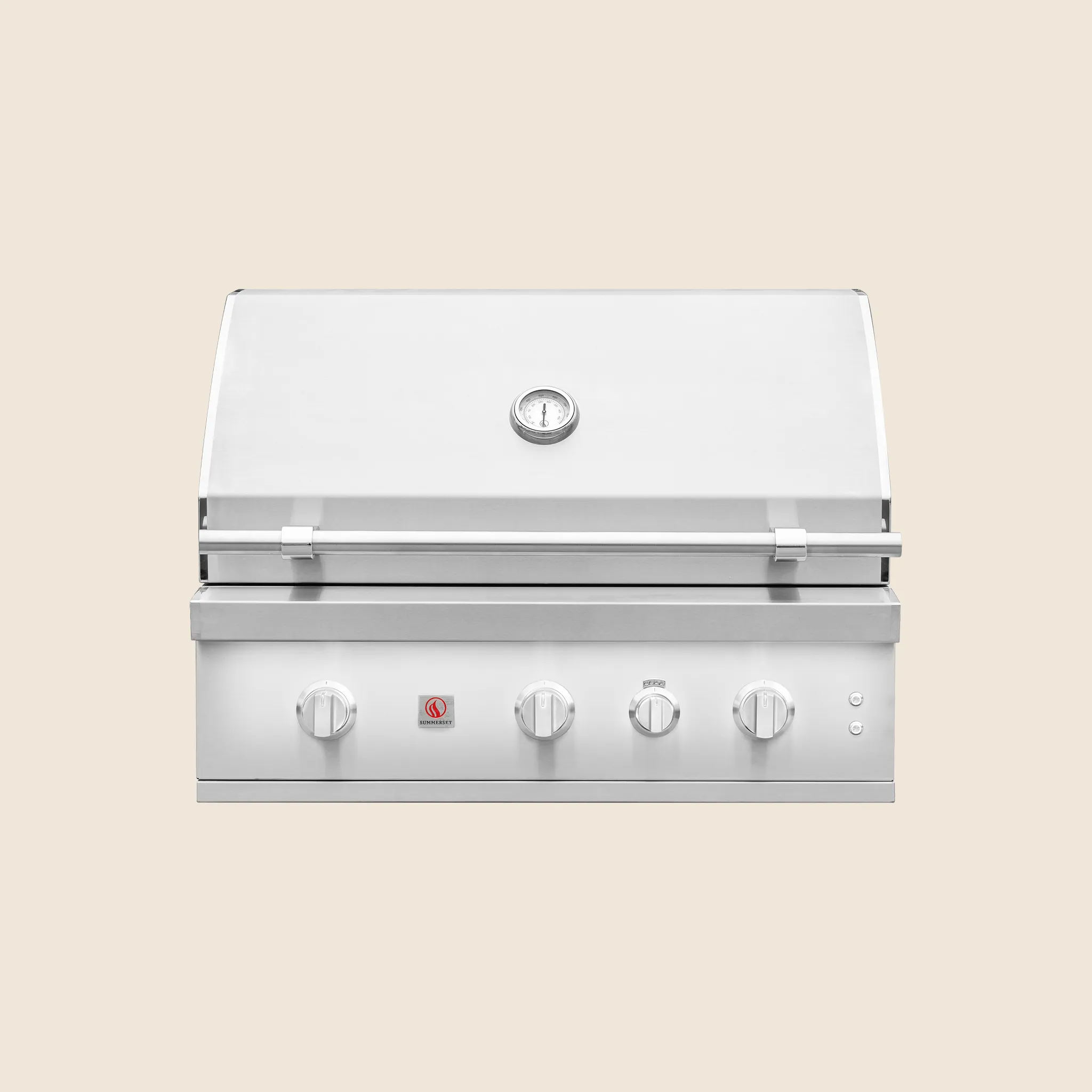 - Comes fully equipped with a Drop-In Griddle Plate, Smoker Box, Rib Rack, Rotisserie Kit, and Multi-Position Warming Rack