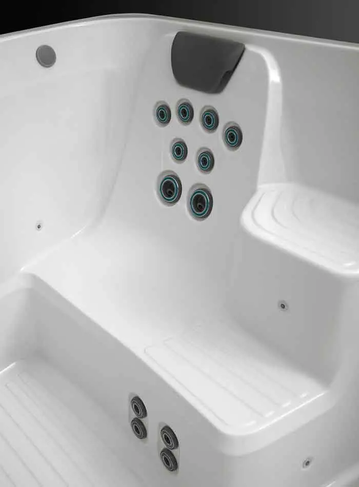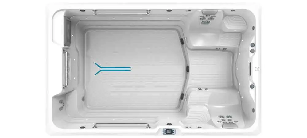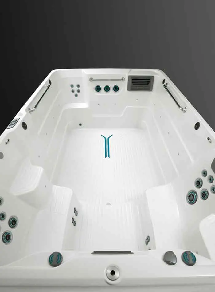 Inside our R200, you can enjoy low-impact aquatic exercise, family fun, and swimming with our optional tether. And when it's time to recover, you can sit back and relax in any or all of five ergonomic spa seats with 27 hydromassage jets. For family time, the kids have a built-in play area with our 30"-deep reef that stretches between bucket seats. Then when it's time to party, invite your friends, because this swim spa comfortably accommodates up to 10 adults.