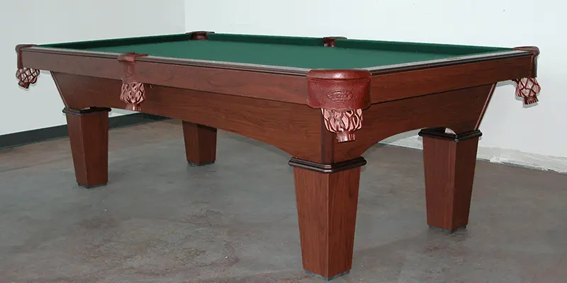 The Reno Laminate Pool table is made from is made from Laminates & Solid Wood and features traditional style arched cabinet design with classic tapered legs.. All Olhausen Pool tables are hand-crafted at our 250,000 sq. ft. manufacturing facility in Portland, TN and feature Accu-Fast Cushions and our Lifetime Warranty.