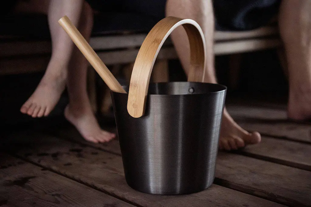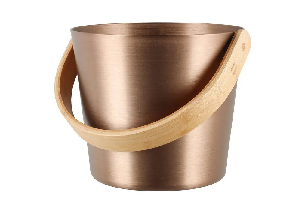 Timeless and classic, this Rento Aluminum Sauna Bucket features a traditional wooden carry handle with a color-anodized aluminum pail, perfect for sauna use and convenient carrying. Just add a ladle, water, and maybe even some fragrance to intensify your sauna session.