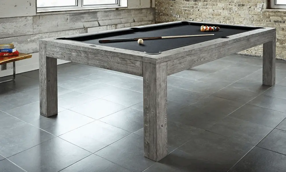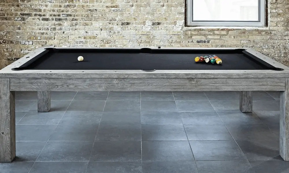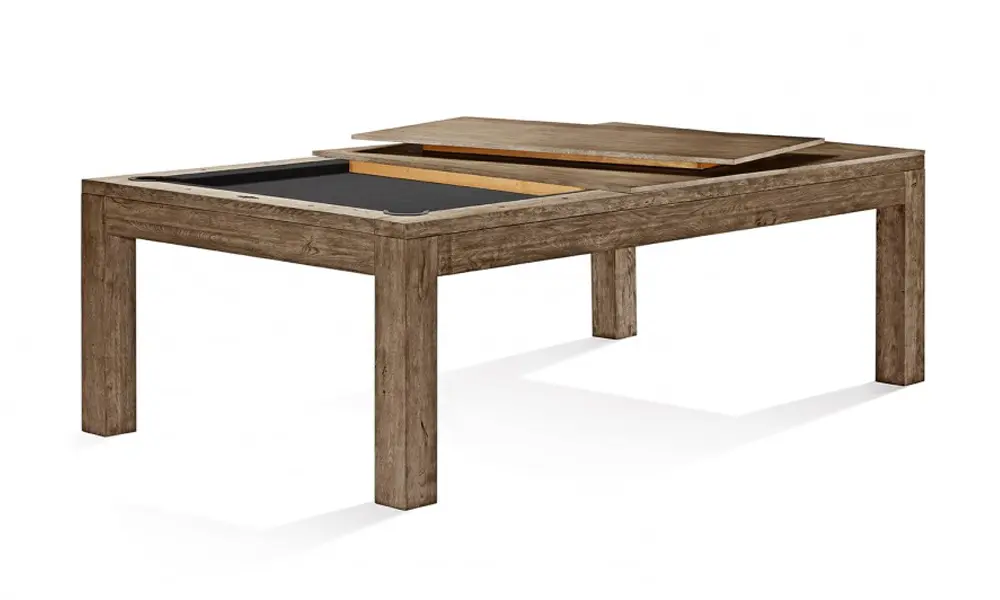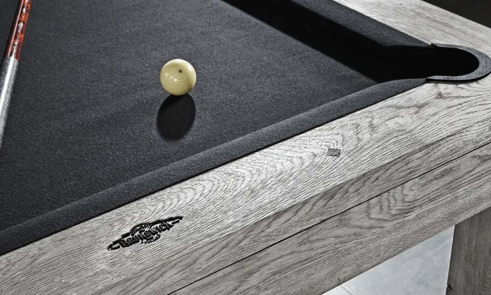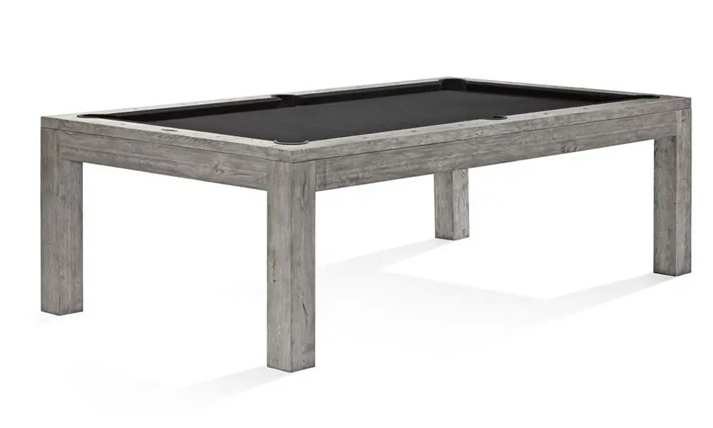 The Sanibel features a modern design with ultra clean lines and minimalist aesthetic. Specialized hand hammered sights provide unique detailing and the new low-profile pockets keep the table incredibly sleek. The Sanibel is available in 7' and 8' sizes in Rustic Grey and Rustic Dark Brown finishes. Complete your Sanibel Billiard Table with the Sanibel Dining Top and the Sanibel Wall rack, each sold separately.