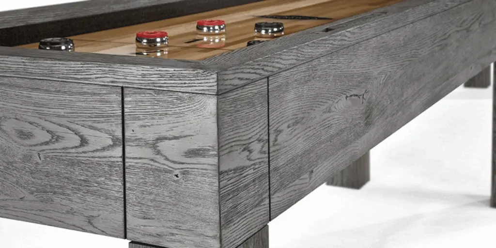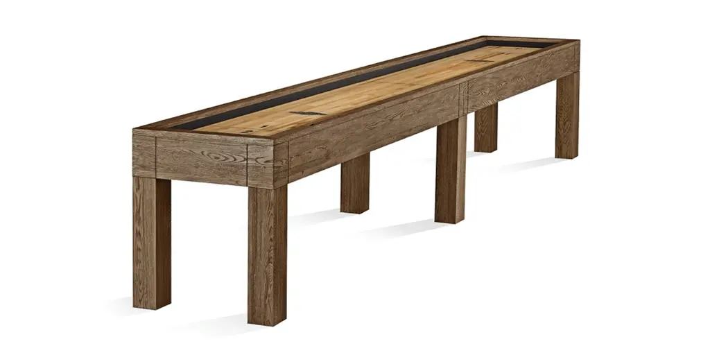The Sanibel shuffleboard table features a modern design with ultra clean lines and minimalist aesthetic- a perfect match to the best-selling Sanibel Billiards Table. The Sanibel is available in Rustic Grey or Rustic Dark Brown finishes and offers a 12' or 14' play surface that promises to deliver quality and playability.
