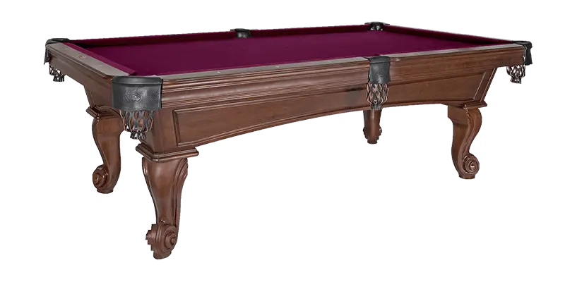 The Santa Ana Pool table is made from Solid Wood and features traditional style arched cabinet design with Rams-Horn style carved legs. All Olhausen Pool tables are hand-crafted at our 250,000 sq. ft. manufacturing facility in Portland, TN and feature Accu-Fast Cushions and our Lifetime Warranty.