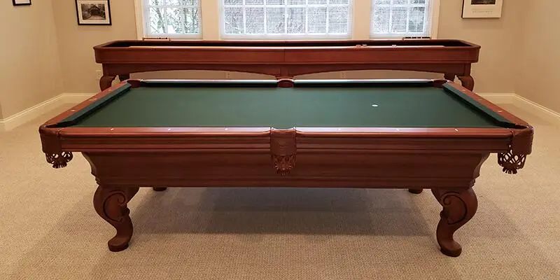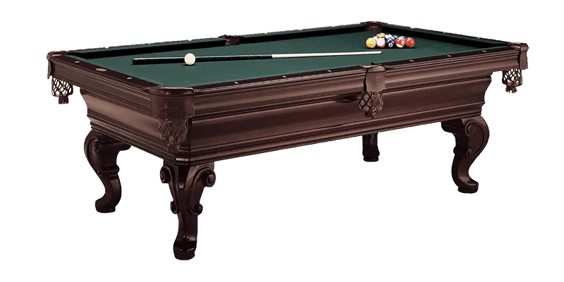 The Seville Pool table is made from Solid Wood and features flat paneled routered cabinet design with ornate carvings on legs. All Olhausen Pool tables are hand-crafted at our 250,000 sq. ft. manufacturing facility in Portland, TN and feature Accu-Fast Cushions and our Lifetime Warranty.